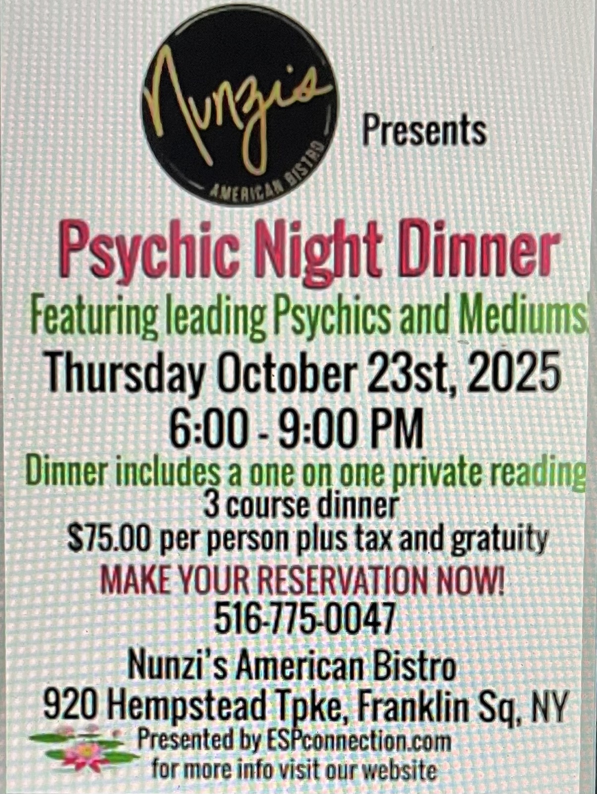 October 10 @ 7:00 pm - 11:00 pm Psychic Fest American Legion Post 1066 66 Veterans Blvd, Massapequa, NY, United States