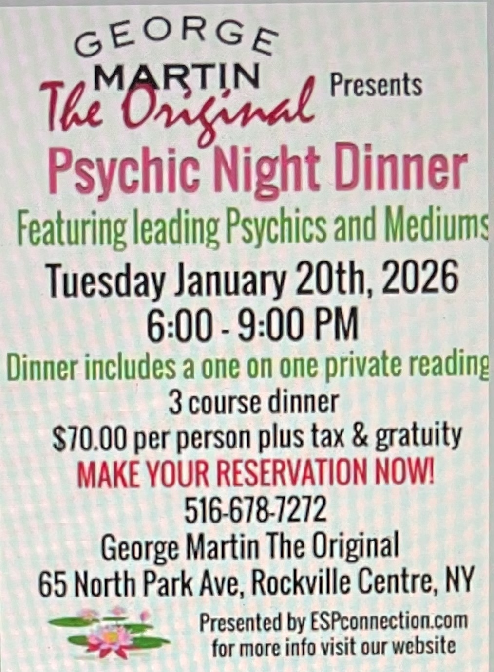 January 20 @ 6:00 pm - 9:00 pm George Martin The Original George Martin The Original Rockville Centre 65 North Park Ave, Rockville Centre, NY, United States